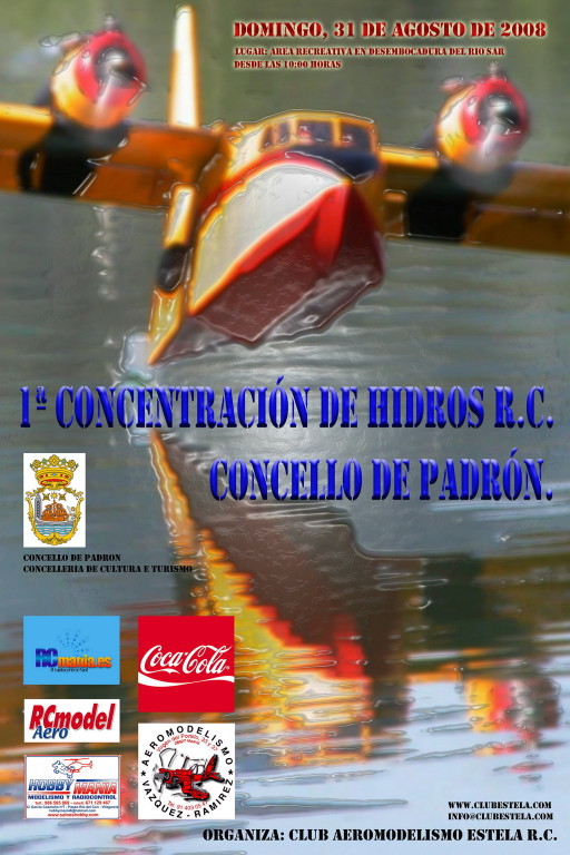 El 31 de Agosto de 2008 celebramos la I Concentración de Hidroaviones organizada por nuestro club. Tuvo lugar en el área recreativa situada en la desembocadura del río Sar con el río Ulla, en el Concello de Padrón. Fue un rotundo éxito de participación.